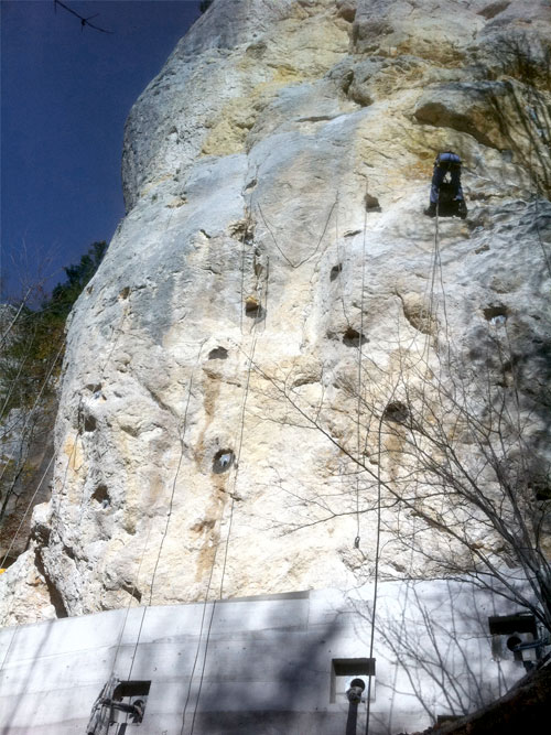 Renforcements du tunnel de la Grande Beuge par des ancrages et un mur de soutien en béton armé.